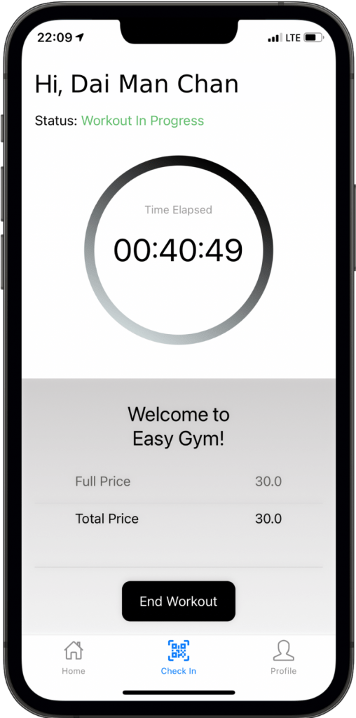 After you finish your workout, scan the designated QR code for check-out purposes.
